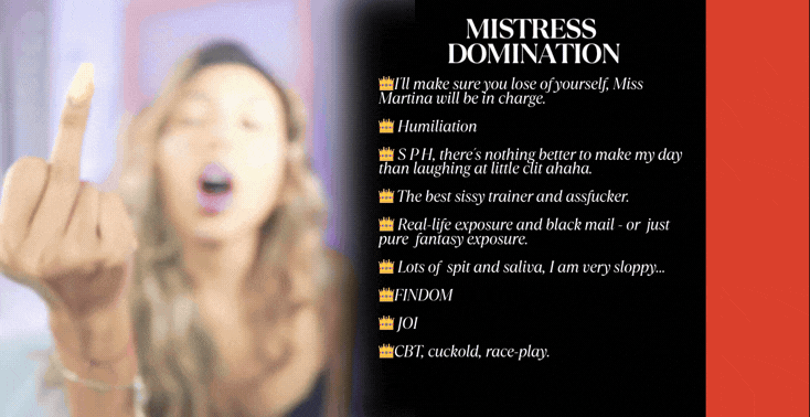 Miss Martina is PERFECTION… I’d give anything to be at her feet, on my knees ready to worship. I’m Miss Martina’s bitch