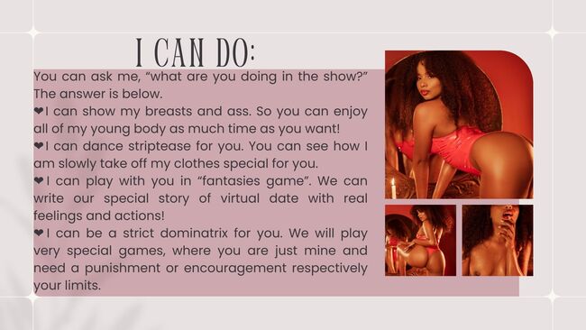 ¡Tú decides que puedo ser tu AMIGO o AMANTE! Me encanta conocer gente nueva y puedo hablar de casi cualquier tema durante horas. Además, soy un buen oyente, así que puedes decirme todo lo que quieras. ¡También puedo hablar de todo lo relacionado con el sexo!